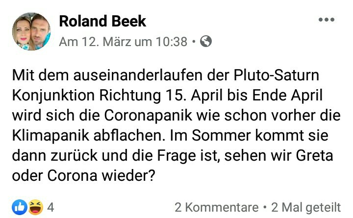 Des weiteren habe ich im Face-Book-Post vom 12.03.2020 die Lockerungen der sogenannten Corona-Maßnahmen ab Mitte bis Ende April vorausgesagt, und das diese zum Sommer hin wieder anziehen werden.